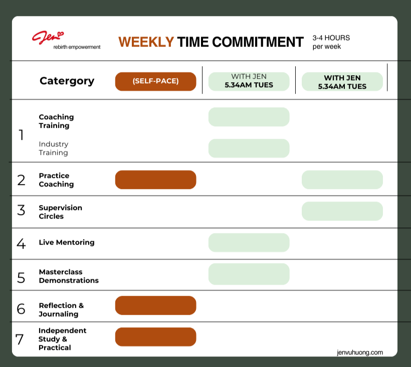 + Independent Study – dedicate time to personal and professional exploration, aligning your learning with your unique coaching identity.